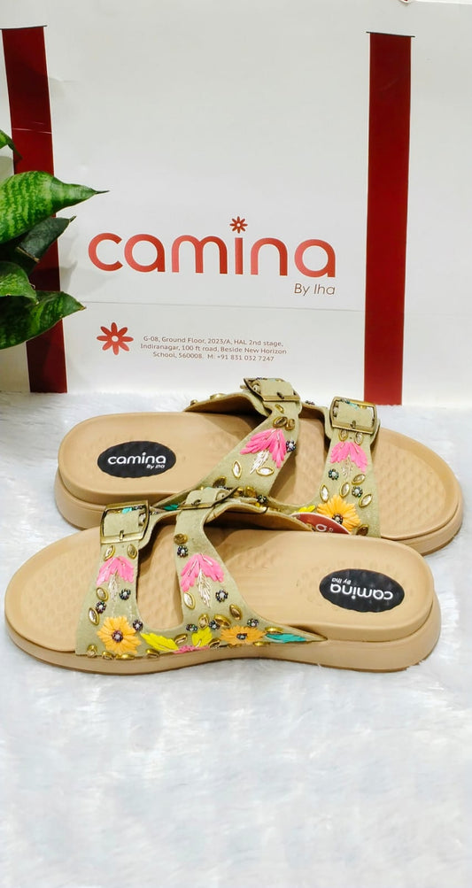 Floral Embroidered Buckle Sandals Comfort & Style A179