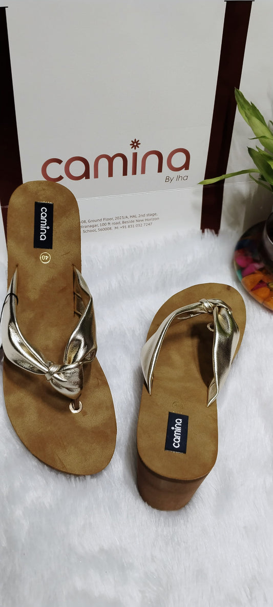 Elegant Metallic Bow Knot Thong Sandals for Women-C149